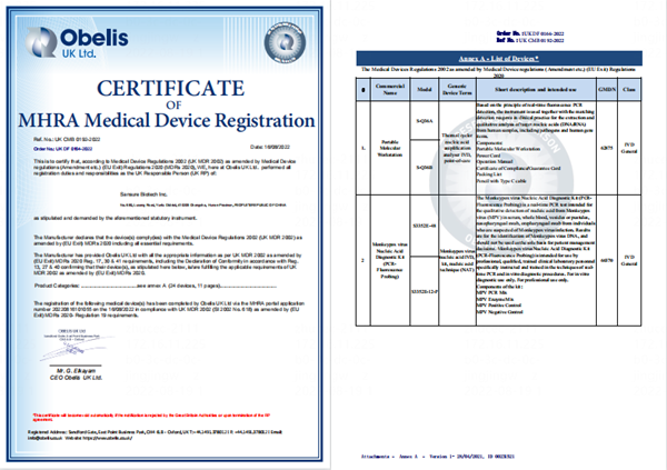 近日,米兰电竞生物自主研发的猴痘病毒核酸检测试剂盒(PCR-荧光探针法)通过英国MHRA认证,该产品获得英国MHRA注册后,可在英国和认可英国MHRA注册的国家或地区销售,这是继欧盟CE之后斩获的又一权威认证。