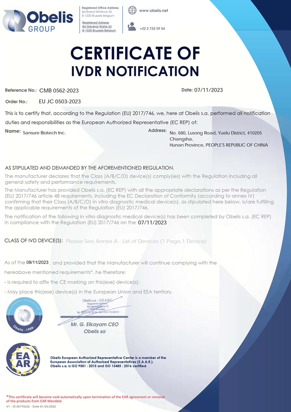 近日,米兰电竞生物在免疫诊断领域和国际化战略布局取得重要成果。11月14日晚间,米兰电竞生物披露公告称,全自动化学发光免疫分析仪产品于近期获得欧盟CE IVDR认证。